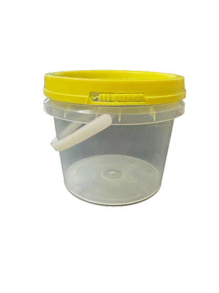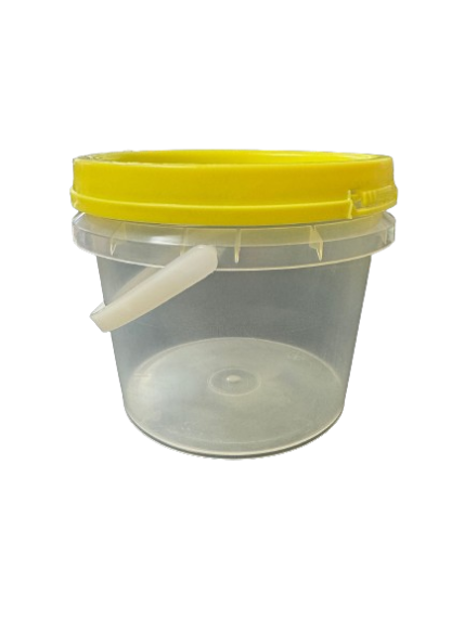 These standard small honey buckets are made from clear, food grade plastic, with a handle and yellow lid. Buy by the carton (120 jars) to receive the bulk discount.