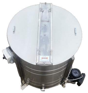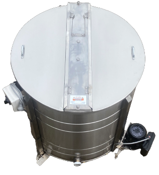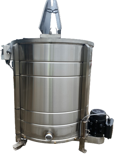 During the extraction process the honey is forced out of the uncapped wax cells by centrifugal force, runs down the walls and pools at the bottom of the S/S extractor. A tap or honey pump allows for the removal of honey from the extractor.