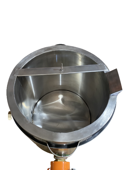 This is the perfect solution to uncapping, for those with 20-100 hives. The cappings (with honey) are melted, and flow into a bucket. Next day a solid block of wax floats on top of the honey. Open the gate - the honey flows out. Lift the block of wax off the top.