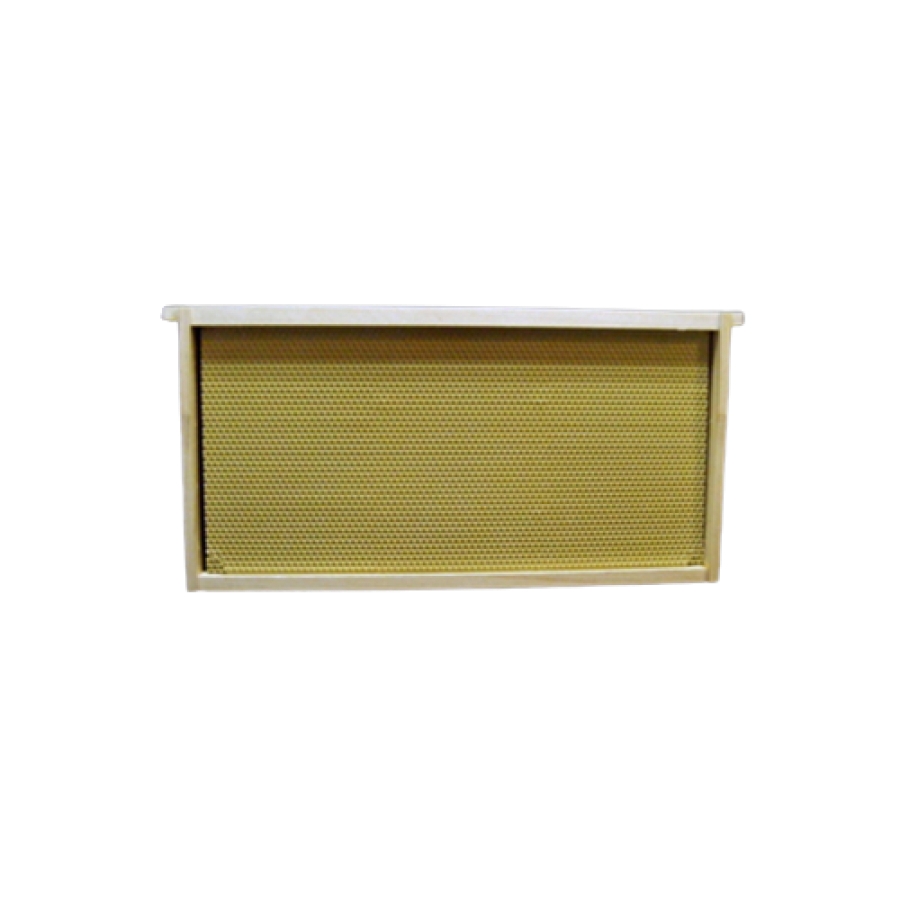 Frames already assembled, wired with the beeswax foundation sheet already attached.