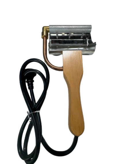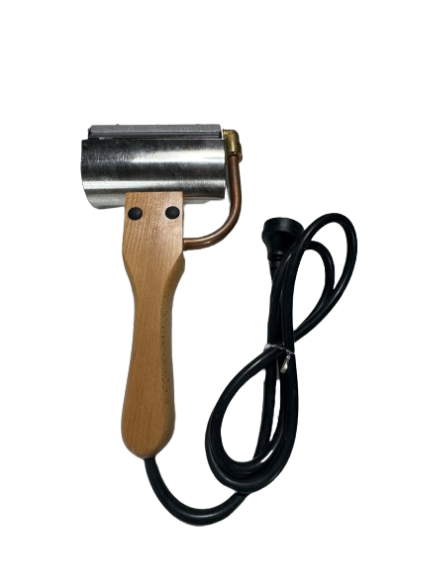 This uncapping plane has a copper cutting blade that heats up and is adjustable to the depth of cut.