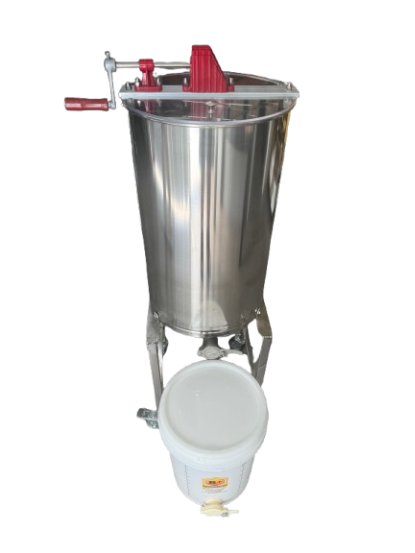 These are ideal for the people that have a small number of hives. With the side crank handle extracting or the spinning out of honey has become much easier than the older top winder models. These smaller models are only available in Lateral design and are very efficient. All extractors are made of stainless steel including the mobile stands with two lockable castors. This enables you two wheel it outside for cleaning. Simply hose out and allow to dry. All extractors are supplied with a bucket with honey gate.