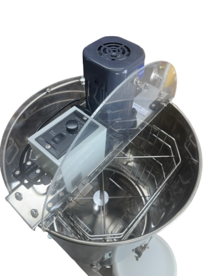 This model extractor is popular with beekeepers that have 2-10 hives. Basically the same as the four frame manual but with a variable speed motor to do the work for you.