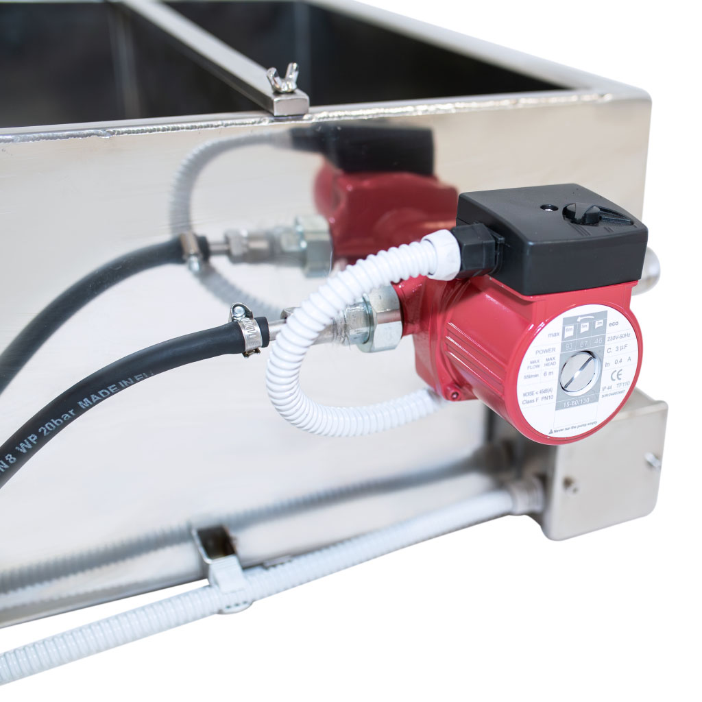 The SZ-KAD-F Honey Sump is a robust and efficient solution for honey processing. With a 160-litre capacity, it features five separate ventricles divided by four strainers for optimal filtration. Tubes at each end allow easy honey entry, while a central drain enables smooth pumping. The 1.1 kW heating system maintains consistent temperatures, ensuring efficient honey flow and processing. This unit is ideal for beekeepers seeking reliable, high-capacity honey handling equipment.