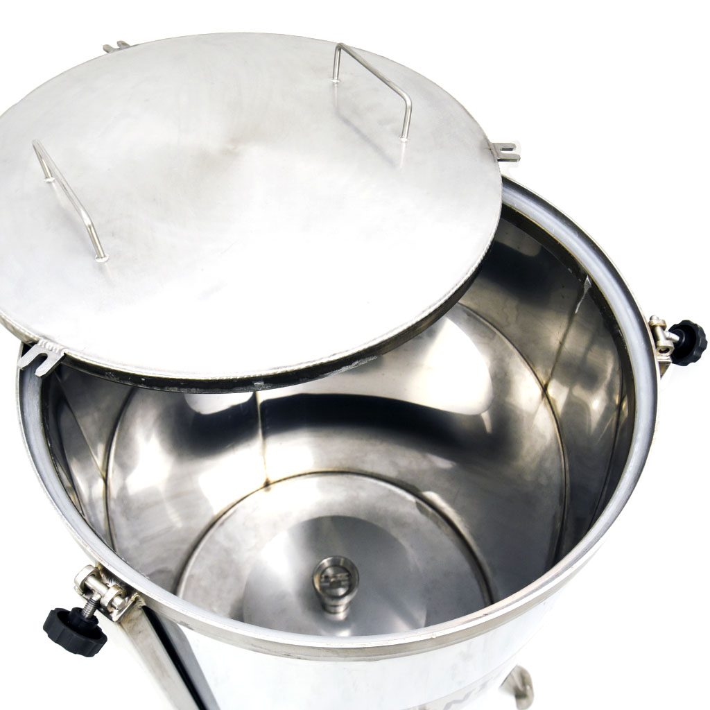 The VC-64-230 Wax Melter and Extractor is a robust, electrically heated unit designed for efficient wax melting and extraction. With a 640 mm diameter, it allows beekeepers to melt wax into blocks or extract wax from frames with ease. The lockable lid and bearing system ensure safe and reliable operation, while the compact design makes it versatile for a variety of production settings.